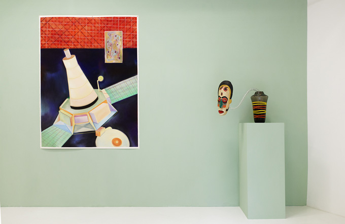 Sans titre, 2015, collage et acrylique sur papier marbré, 19 x 13 cm